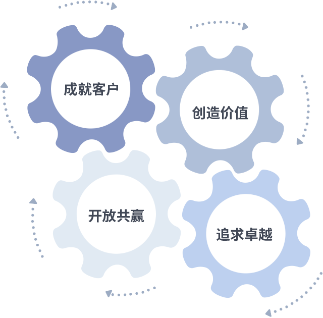 成就客户是一切决策的出发点,创造价值是衡量所有工作的标准,追求卓越是97国际做事做人的态度,开放共赢是97国际的格局也是最终的结果。价值观的齿轮环环相扣,推动着组织里的每个人不断向前。